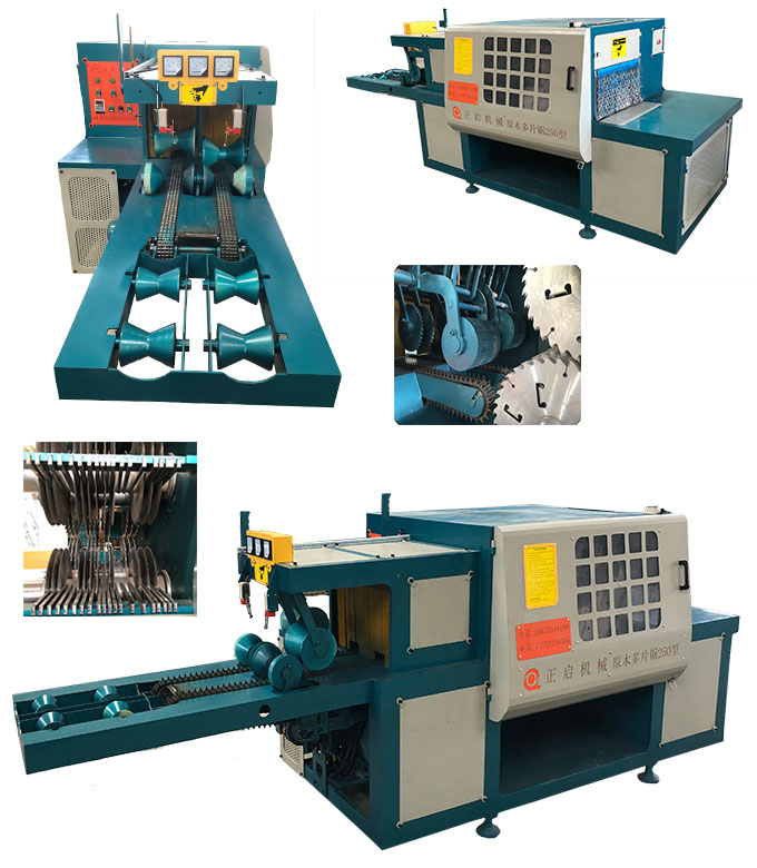 ZQ250型双排链原木多片锯是针对原木锯切而设计的专用机床,采用五轴结构设计-前锯后导航确保木板的精确度,无论木板长短均可保证锯切木材尺寸公差在0.2mm-0.5mm之内,尺寸标准偏差小,节约木料,上下锯轴,锯片采用进口带刮刀锯片,锯切表面光滑,无需再刨,保证不烧锯片。采用自动分中装置,提高木材的利用率;上压辊主动增加压力,送料平稳;轴心喷水冷却锯片,去脂降温,增强锯片的使用寿命。一次多片,大大提高工效;