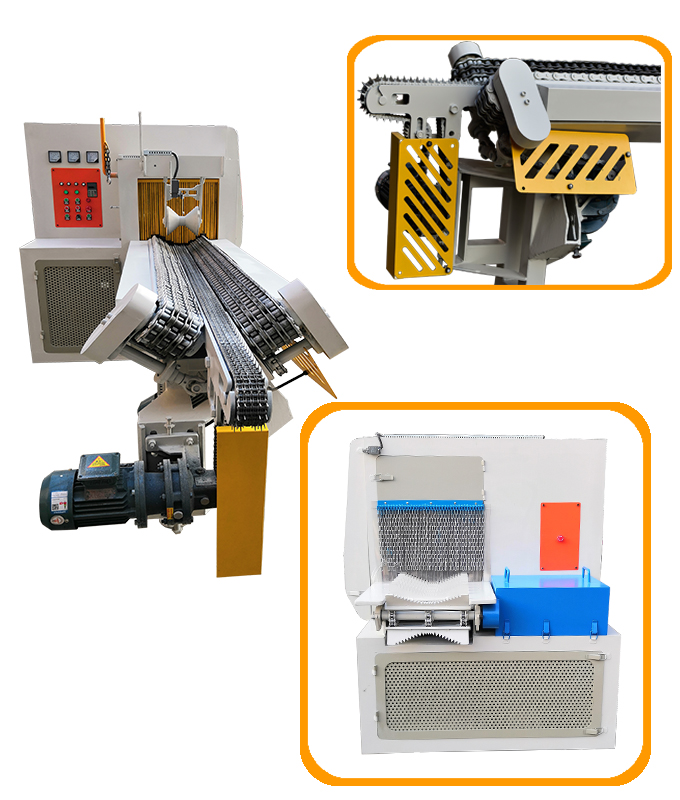ZQ350型原木多片锯是针对原木锯切而设计的专用机床,采用五轴结构设计-前锯后导航确保木板的精确度,无论木板长短均可保证锯切木材尺寸公差在0.2mm-0.5mm之内,尺寸标准偏差小,节约木料,上下锯轴,锯片采用进口带刮刀锯片,锯切表面光滑,无需再刨,保证不烧锯片。采用自动分中装置,提高木材的利用率;上压辊主动增加压力,送料平稳;轴心喷水冷却锯片,去脂降温,增强锯片的使用寿命。一次多片,大大提高工效;  主 轴:采用优质材料经调制,高精度外圆磨,动平衡处理,稳定性高,耐磨耐用防锈。 降温系统:采用轴芯喷水技术,防尘环保,保护锯片,能确保锯片持续工作,延长锯片寿命。 送 料:采用四排尖齿链条输送,机上配有变频智能调速器,可以对大小木料的进料速度实行自由调速。原木可以实现自动分中,机上还配有限位开关,防止超去规格木料进入,防止卡木避免对机器造成损坏。 箱 体:主机箱一体化设计,一次性数控加工,进一步设备稳定性能,大幅度提高锯片的使用寿命。同时主机箱体经过时效处理,经久耐用不变形。 轴 承:选用德国进口轴承,稳定性高经久耐用,确保主轴运转灵活无故障,有助延长锯片使用寿命。