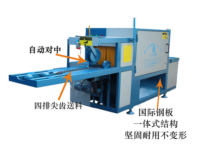 送 料:采用四排尖齿链条输送,机上配有变频智能调速器,可以对大小木料的进料速度实行自由调速。原木可以实现自动分中,机上还配有限位开关,防止超去规格木料进入,防止卡木避免对机器造成损坏。